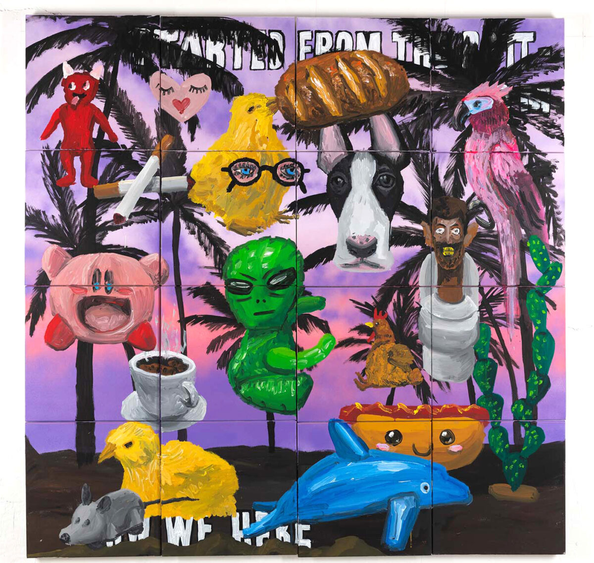 The new series of paintings will remind us of some of the bizarre consequences of human activity, as well as the ways in which “nature retaliates”, as the media often likes to remind us. The dreadful idea of nature that is vindictive and unforgiving threads through the narrative behind these works, reminding us, however, that this view is inherently selfish and essentially human. With that in mind, Ćuk creates an environment in which one cannot be sure whether the hybrid entities on display are referring to something “man-made”, something unnatural, or in fact very natural — belonging to a world of simultaneous hyper-production and emptiness.